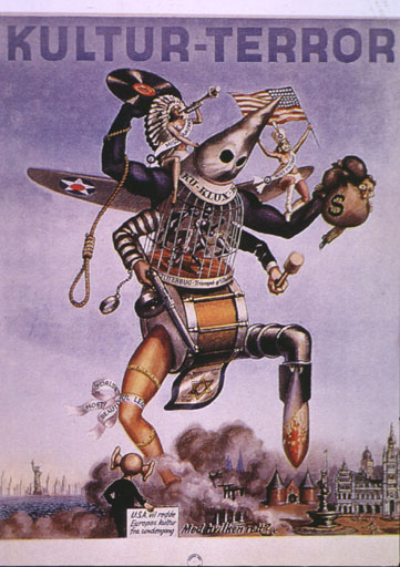 Nazi propaganda poster, 1944. Hey, it’s no more ridiculous than the typical wingnut’s vision of a Sunni-Shia-Papist-Iran-Saddam-al Qaeda-Jacques Chirac-Michael Moore-Pat Buchanan-Dixie Chicks-Kim Jong Il-Antiwar.com axis of evil.